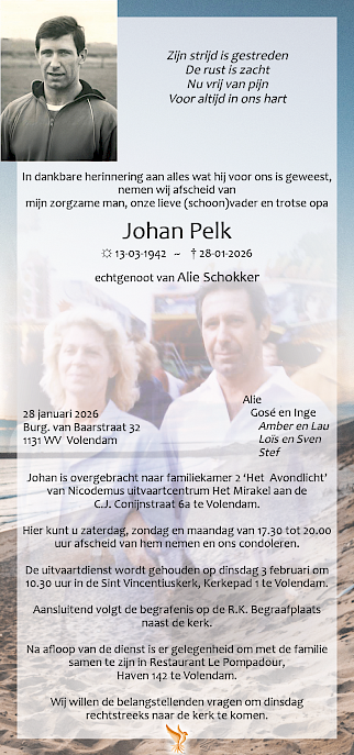Woensdagmiddag heeft ons het droevige nieuws bereikt dat Johan Pelk is overleden. Johan debuteerde op 16-jarige leeftijd, in april 1958, in het eerste elftal van FC Volendam. Hij maakte 109 doelpunten in competitieverband en behoort daarmee tot de topscorers aller tijden van de club.