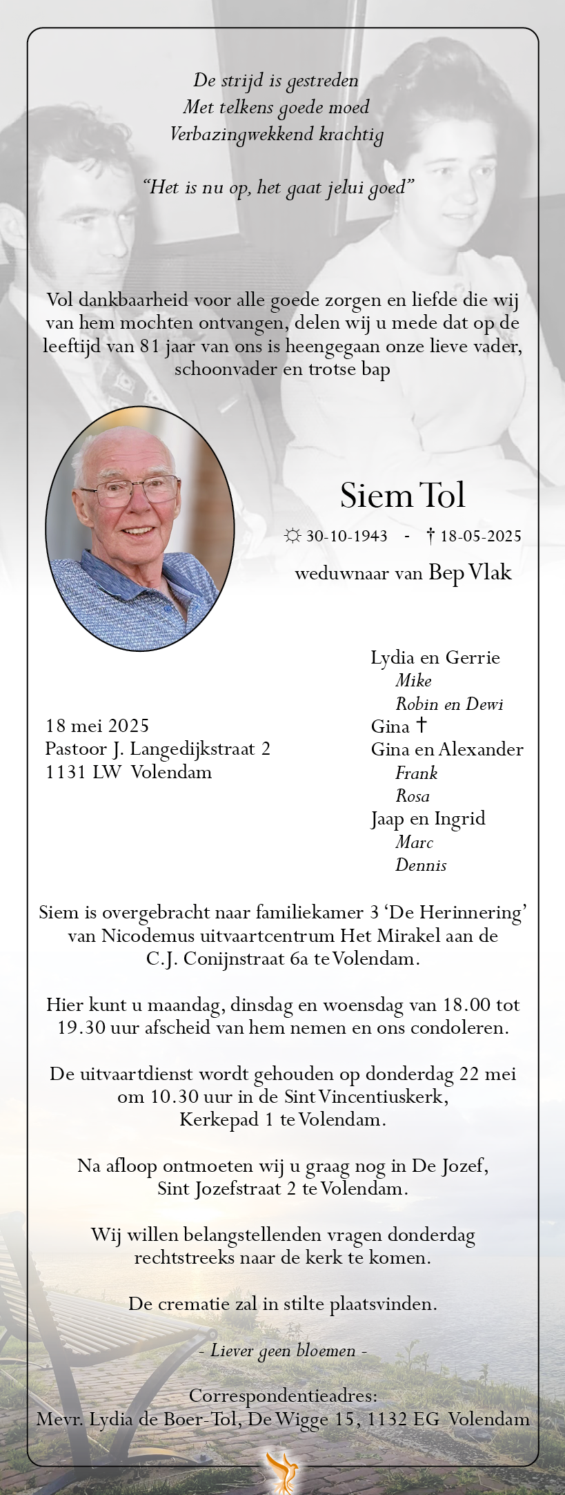 Zondag heeft ons het droevige nieuws bereikt dat Siem Tol is overleden. Siem was een vriendelijke man die zeer goed om kon gaan met de jeugd.