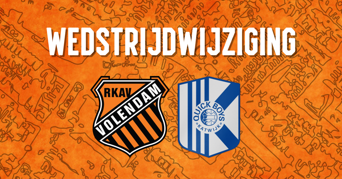Het thuisduel tegen Quick Boys is verplaatst naar 11 februari 19:30 uur. Dit vanwege de deelname van de uitploeg aan de kwartfinales van het TOTO KNVB Bekertoernooi.
