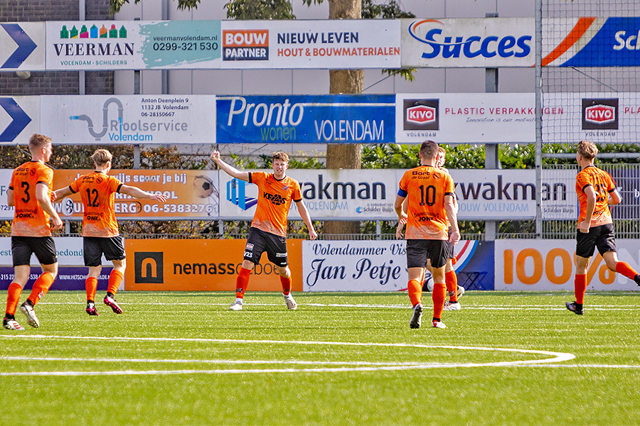 Opstelling RKAV Volendam: Barry Lauwers; Lex Veerman, Stef Schokker, Perry Karregat, Rob Tol; Pieter Kroon, Nick Runderkamp (88' Niels Kwakman), Daan Sier (73' Lennard Tol); Jaymillio Pinas (64' Roy Tol), Dave Zwarthoed (73' Daan van Baarsen), Patrick Plugboer (88' Walleed Ait Abdellah).
