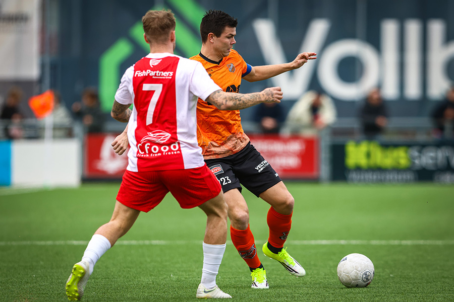 Opstelling RKAV Volendam: Dominique Witte; Lex Veerman, Perry Karregat, Daan Steur (65' Stef Schokker), Tom Smit; Pieter Kroon (88' Waleed Ait Abdellah), Nick Runderkamp, Daan Sier; Roy Tol (88' Arenchelo Leito), Patrick Plugboer en Daan van Baarsen (54' Jaymillio Pinas).