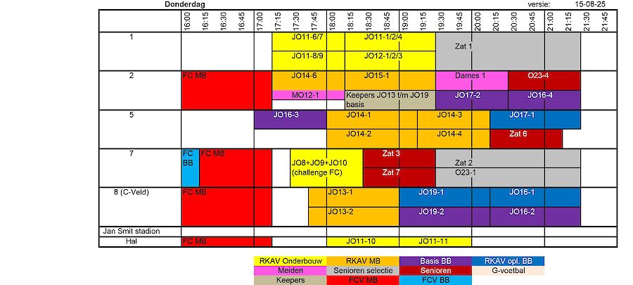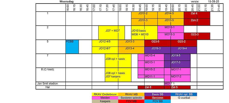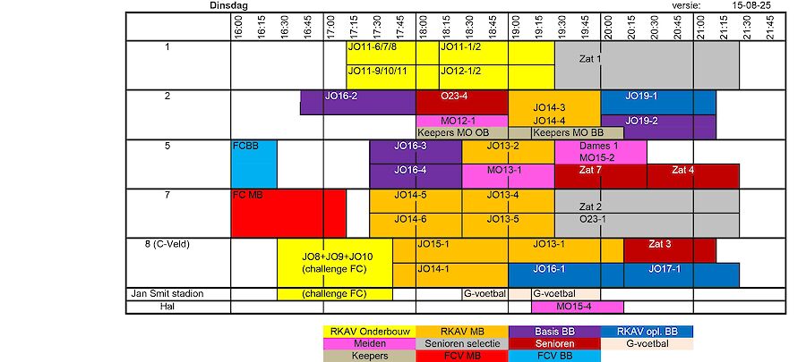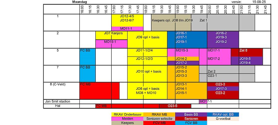 Zie hieronder het trainingsschema voor seizoen 2025-2026.
