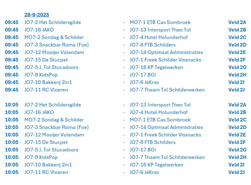 • Inschrijven veldvoetbal jeugd (t/m 18 jaar)
